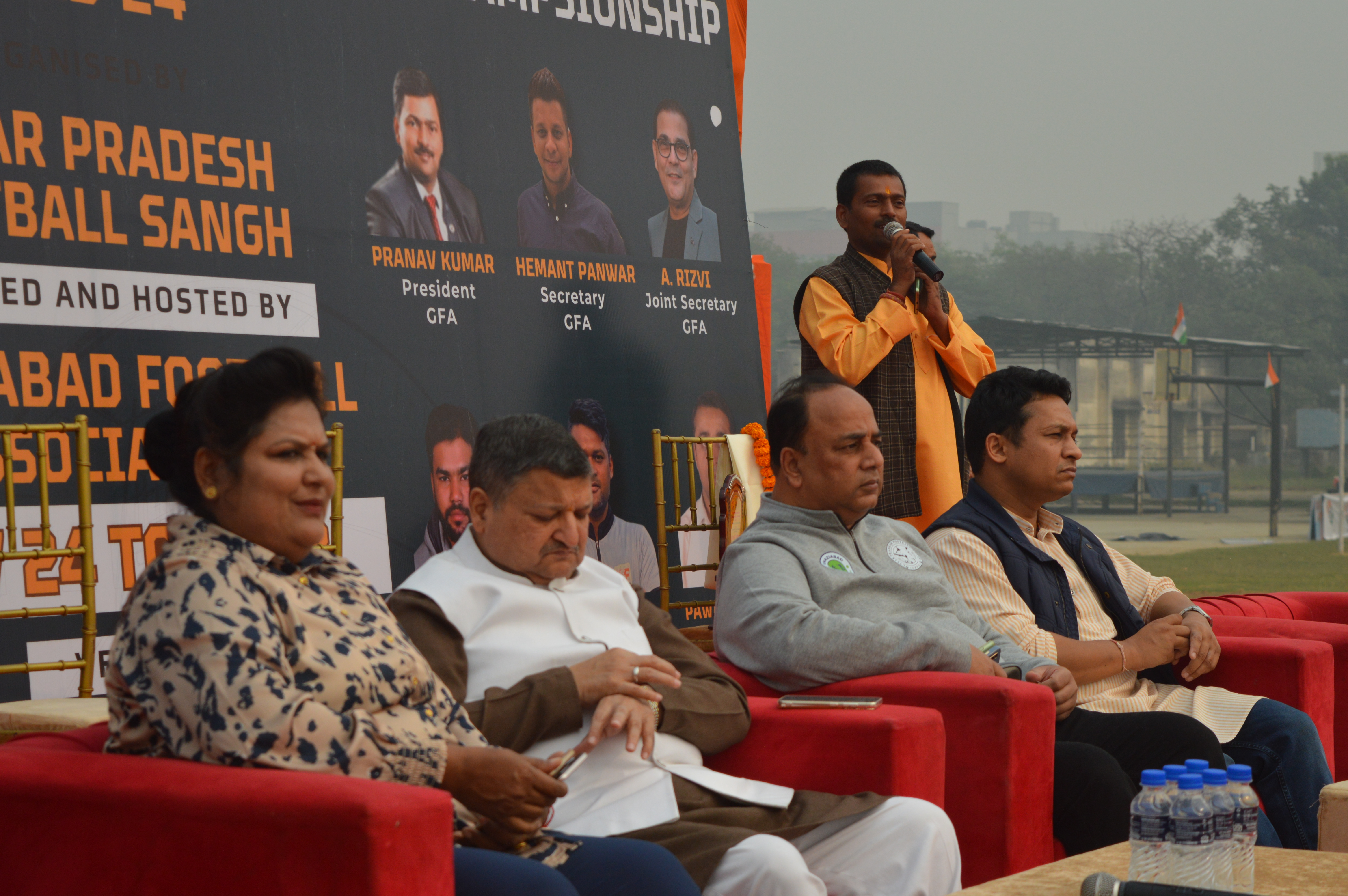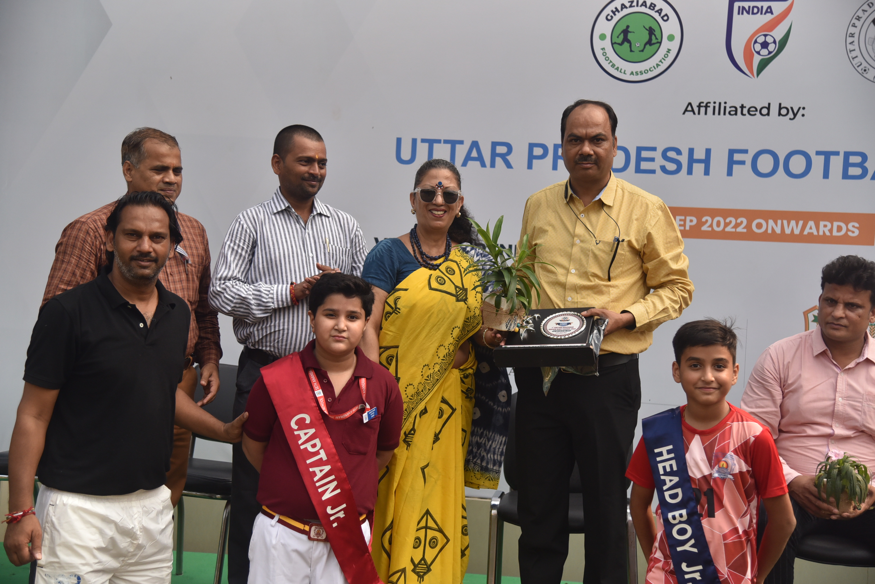 Ghaziabad Golden Baby League was organized on Wednesday at Seth Anand Ram Jaipuria School of Vasundhara Sector-14. It was organized by Ghaziabad Football Association in association with All India Football Association and Uttar Pradesh Football Association. It was inaugurated by Piyush Jain, President, Physical Education Foundation of India and Shalini Nambiar, Principal of the school. Students from 8 schools participated in the league. The team is divided into Under-7, 8 and 10 categories. On the first day there were 4 matches in the under-7 category. The first match was between St. Thomas School and DPSG International. In which St. Thomas School defeated DPSG School by 8-0. The second match was won by Seth Anandram Jaipuria School by defeating St. Thomas School by 1-0. On the other hand, Bright Avenue and Maharaja Agrasen Public School won their matches and scored three points each. In the Under-8 section, DPSG International beat Bal Bharti School 1-0. Seth Anand Ram Jaipuria School scored three goals to win over Maharaja Agrasen School. During this Noida Football Association Secretary Wajid Ali, Vijay Dua, Deepika Goyal, Pawan Tyagi, Ghaziabad Association Secretary Hemant Panwar, Amit Rawat, Nikhil Kumar, Prashant Sharma were present.